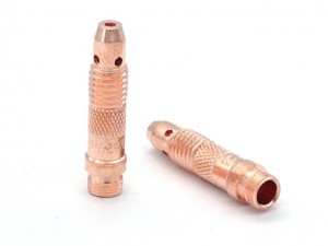 Wysokiej jakości gniazdo tulejki zaciskowej (łącznik) przeznaczone do profesjonalnych uchwytów TIG standardu 17, 18oraz 26. Jest to kluczowy element palnika, który odpowiada za stabilne osadzenie tulejki zaciskowej oraz prawidłowy przepływ gazu osłonowego do dyszy ceramicznej.