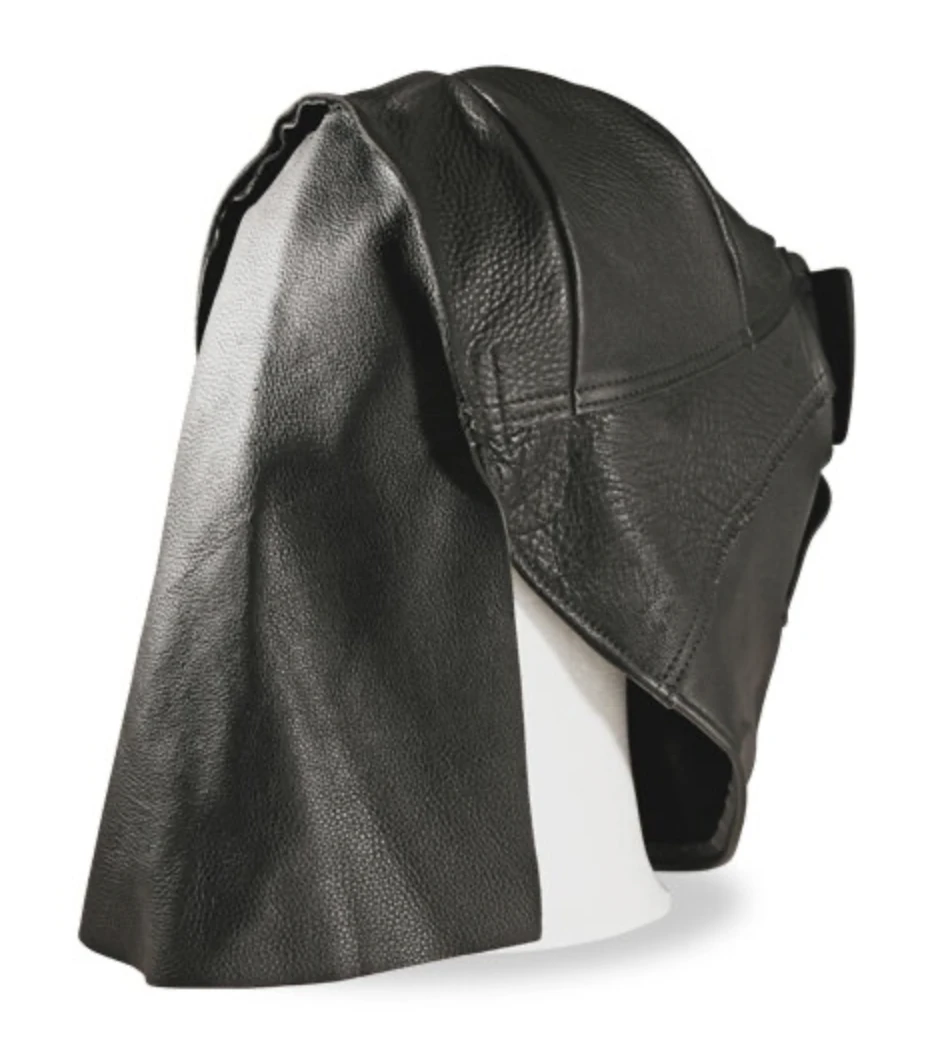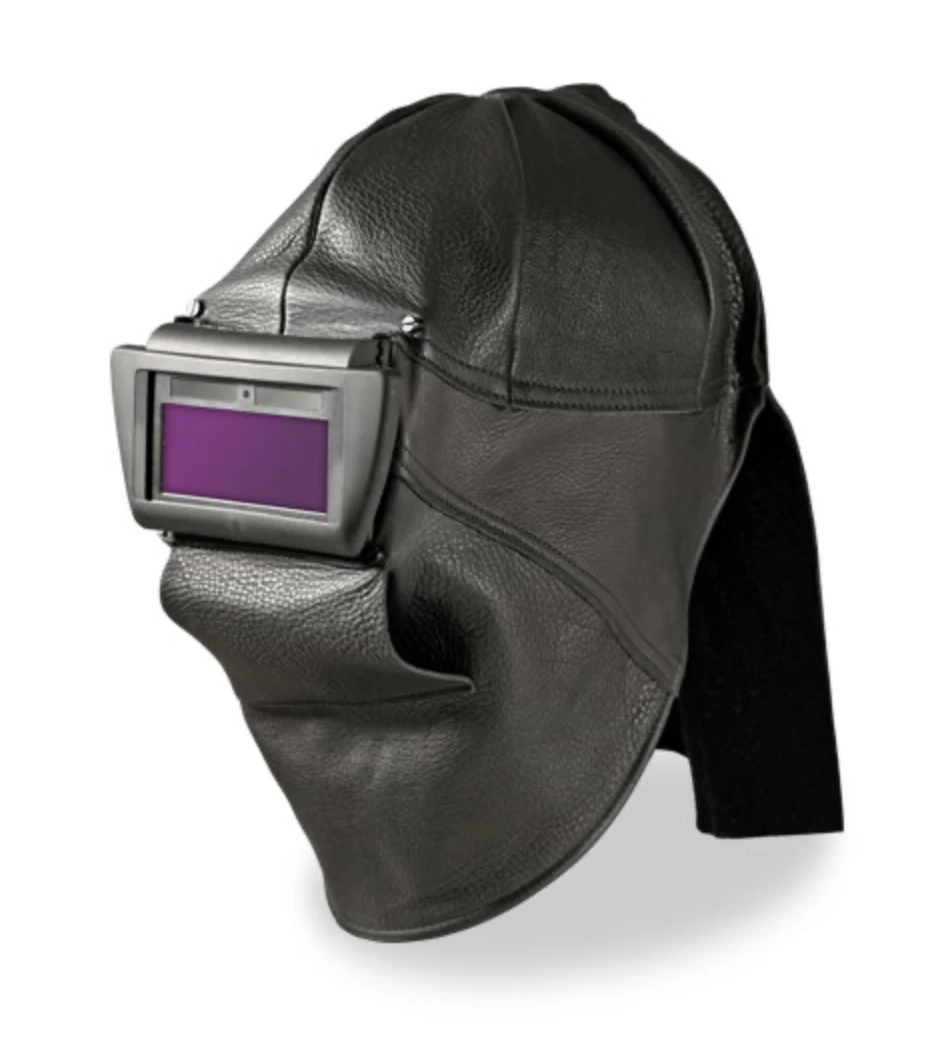 W zestawie: Kompletna przyłbica skórzana z zamontowanym filtrem automatycznym oraz skórzaną osłoną szyi.