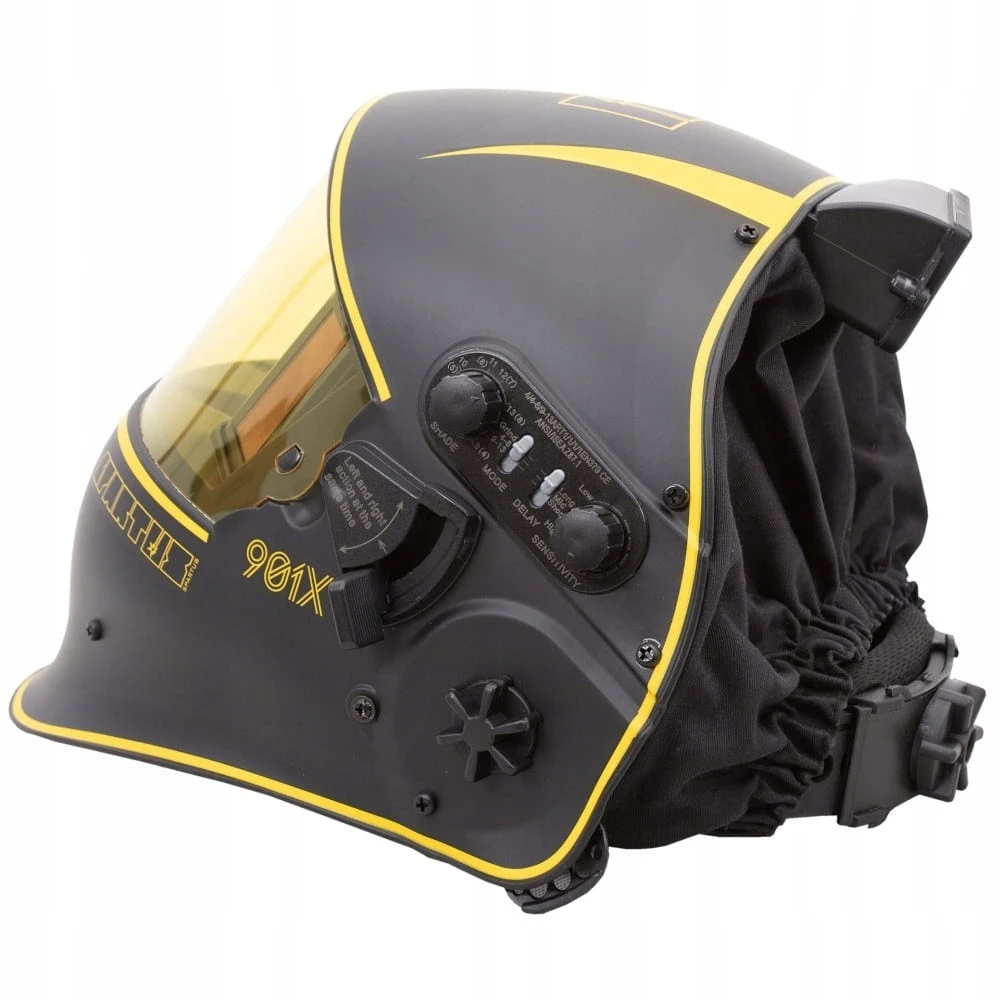 Przyłbica Pro 901X posiada automatyczny filtr spawalniczy o najwyższej klasie optycznej - 1/1/1/1, Idealną widoczność zapewnia duże pole widzenia - 100x65mm. Przyłbica 901X dodatkowo wyposażona jest w specjalny mechanizm podnoszenia i opuszczania filtra spawalniczego. Podczas jego podniesienia środek ciężkości przyłbicy jest niższy i zbiega się ze środkiem ciężkości głowy. Zmniejsza to zmęczenie szyi spawacza znacząco podnosząc jego komfort pracy. Zwiększa się również pole widzenia – 165x72mm, a oczy spawacza zabezpieczone są szybką ochronną.
