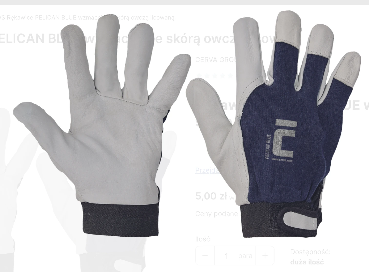 Rękawice PELICAN BLUE wzmacniane owczą skórą licowaną - komfort i precyzja