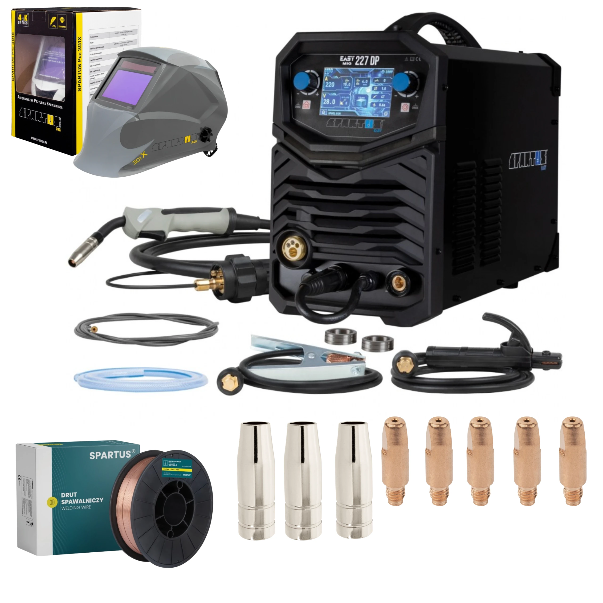 ⚡ ZESTAW MOCY: SPARTUS EASYMIG 227 + PRZYŁBICA 301X + AKCESORIA