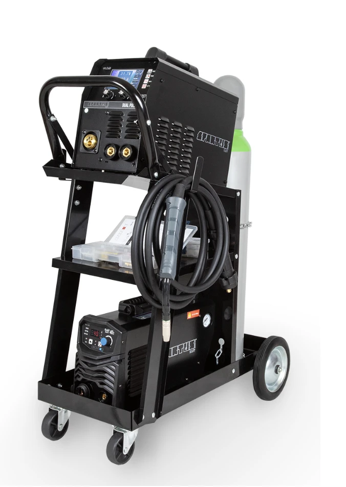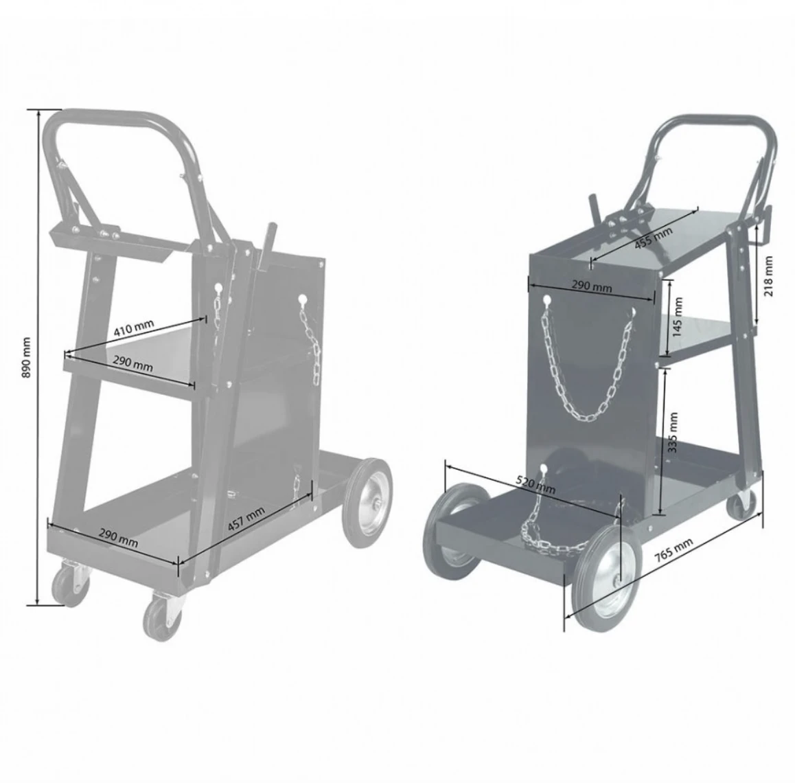 SPARTUS® TR-130 to wielofunkcyjny, mobilny wózek na kółkach, wyposażony w trzy półki, które umożliwiają organizację urządzeń i akcesoriów spawalniczych. Dodatkowo posiada specjalne miejsce na butlę z gazem, zapewniając bezpieczny transport całego wyposażenia. Dzięki praktycznemu układowi, SPARTUS® TR-130 oferuje wygodę i efektywność, usprawniając pracę w warsztatach.